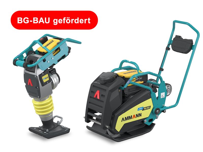 Investieren und gleichzeitig sparen – mit der Förderung für Ammann-Maschinen. Nutzen Sie jetzt noch den Zuschuss der BG Bau von bis zu 2.000€ für Rüttelplatten, ausgestattet mit selbstregenerierendem Dieselpartikelfilter (DPF). Bei Akku-Rüttelplatten oder eStampfern sind es bis zu 800€. Der Zuschuss der BG BAU für Neumaschinen ist mit der staatlichen Sofort-Abschreibung für das Jahr 2025 kombinierbar. Das heißt, Sie können zusätzlich sofort 30 % Ihrer Ausgaben steuerlich geltend machen. Doch beides ist zeitlich begrenzt. Sparen war noch nie so einfach.